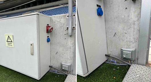 3. Também não corresponde à verdade que a tomada em questão seja a única disponível na área de revisão do estádio. Junto desta existe um outro quadro elétrico com outra tomada disponível para utilização, conforme se pode verificar pela foto subsequente.