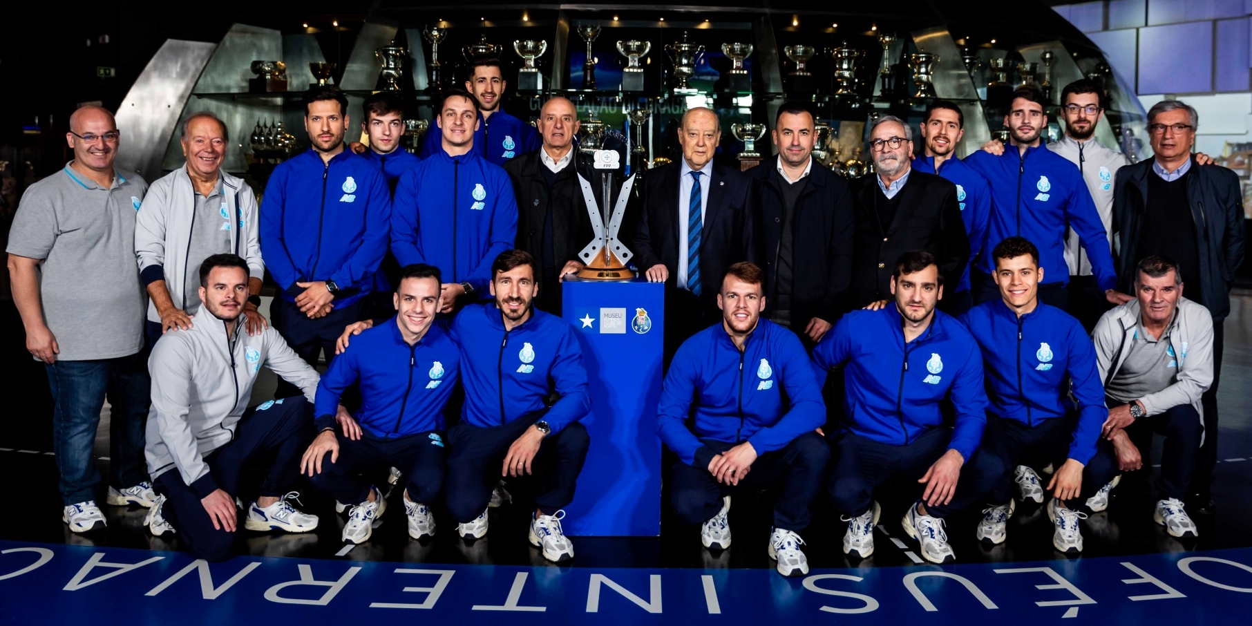 A 19.ª Taça de Portugal de hóquei em patins já mora no Museu FC Porto e Jorge Nuno Pinto da Costa esteve na galeria da história azul e branca para receber mais um troféu. Ladeado pelos obreiros da vitória do passado domingo, com a qual vibrou “imenso”, o presidente portista felicitou “um grupo fantástico”, lembrou Ilídio Pinto como “o grande impulsionador” da modalidade no clube, elogiou o filho Eurico “que colocou a secção no topo a vencer tudo”, prometeu continuar a acompanhar a equipa “quando deixar de ocupar” a presidência e deixou um apelo: “Continuem a ser vocês mesmos, a serem vitoriosos e uns grandes atletas do FC Porto”.