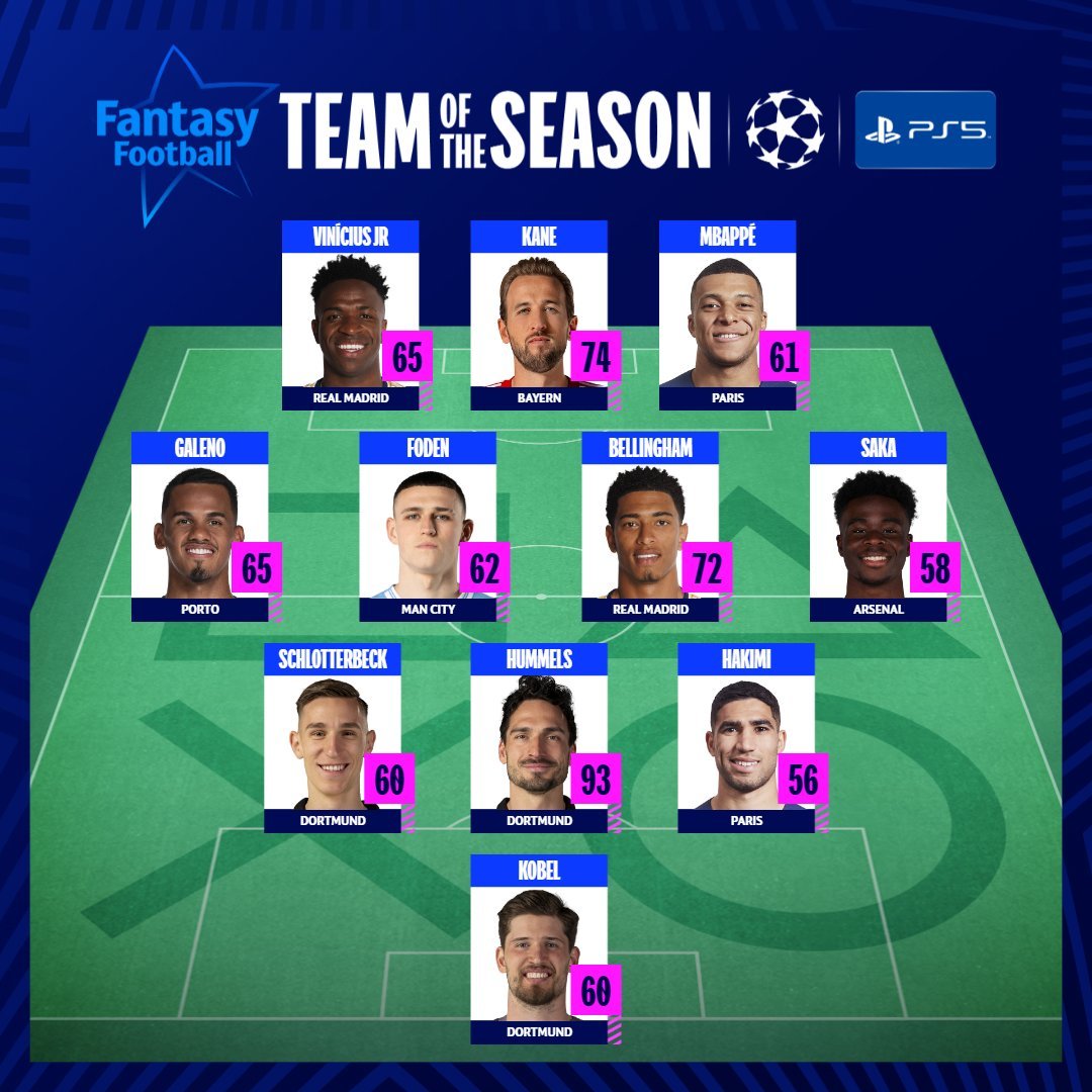 O extremo brasileiro arrecadou 65 pontos, tantos como Vinícius Júnior (Real Madrid), e compôs um elenco em que estão presentes também Kobel (Dortmund), Hakimi (PSG), Hummels (Dortmund), Schlotterbeck (Dortmund), Saka (Arsenal), Bellingham (Real Madrid), Phil Foden (Manchester City), Mbappé (PSG) e Harry Kane (Bayern de Munique).