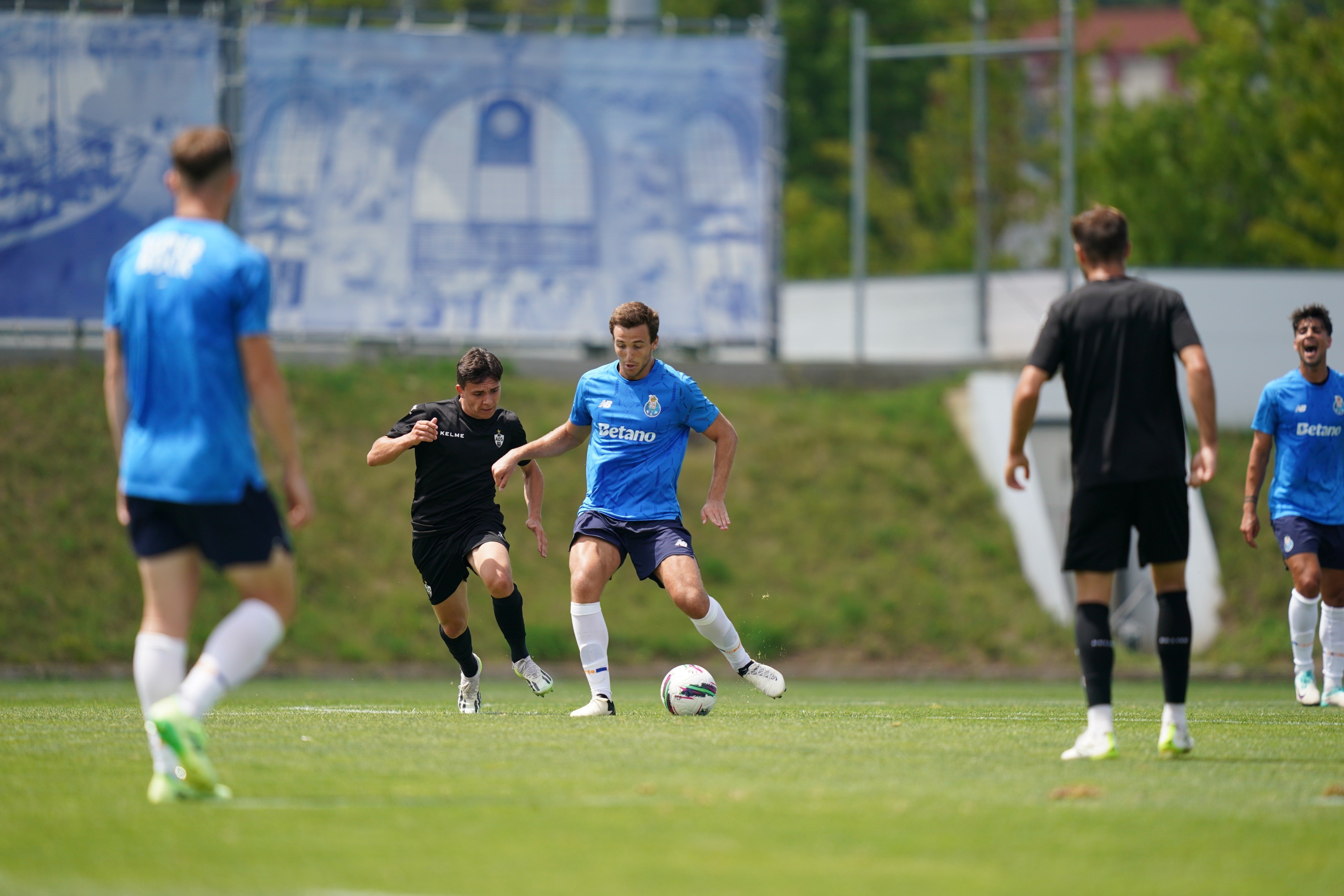 O plantel principal do FC Porto continua a preparar a temporada 2024/25 em Vila Nova de Gaia. Este sábado de manhã, no Olival, os portistas realizaram uma sessão conjunta com a Sanjoanense.