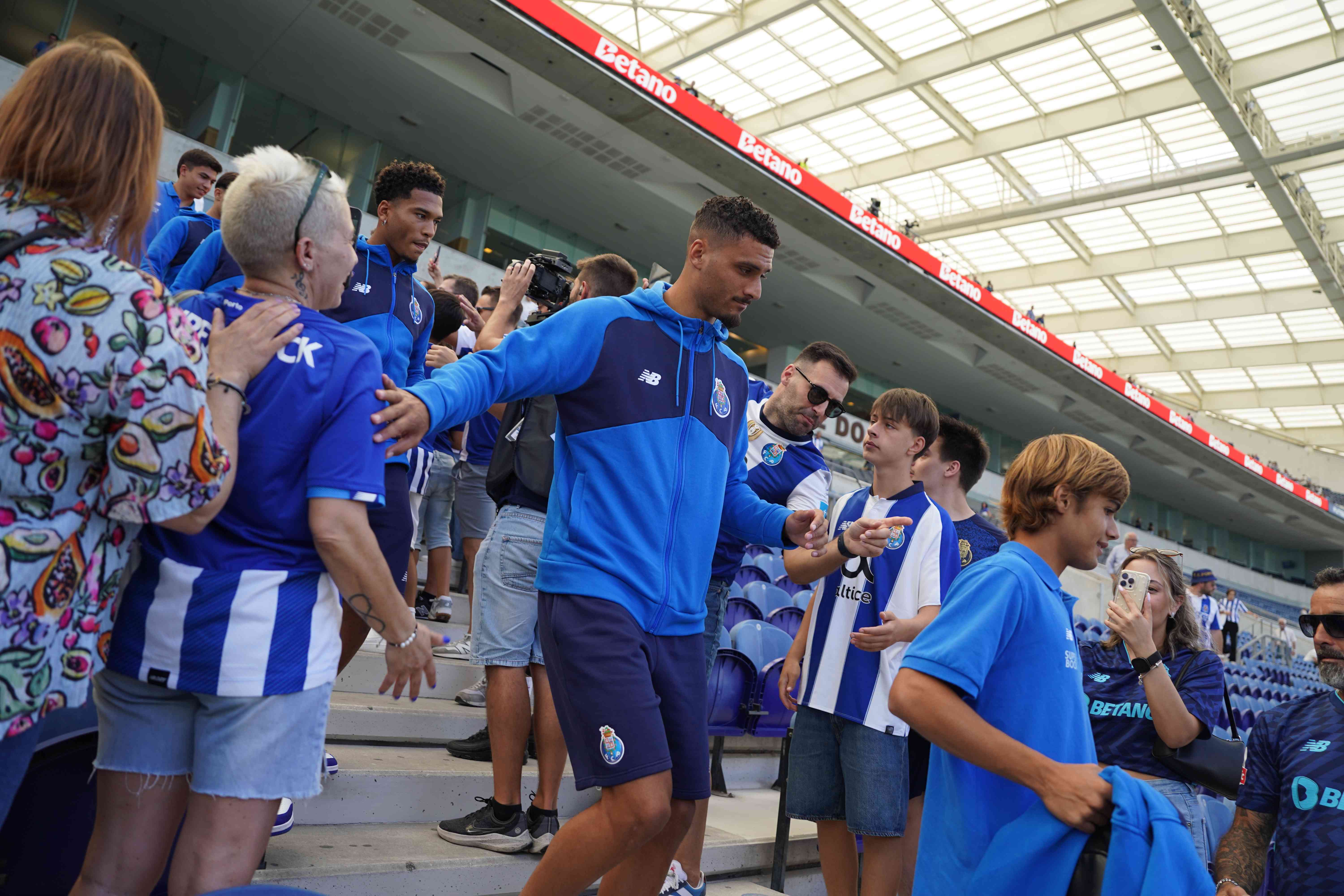 Entrados pela porta 2, os atletas desceram as escadas da bancada Poente e acederam aos balneários através do relvado. Em vez do conforto do P1, o plantel sentiu o calor humano dos milhares de portistas que aguardavam ansiosamente pelo arranque do jogo de apresentação.