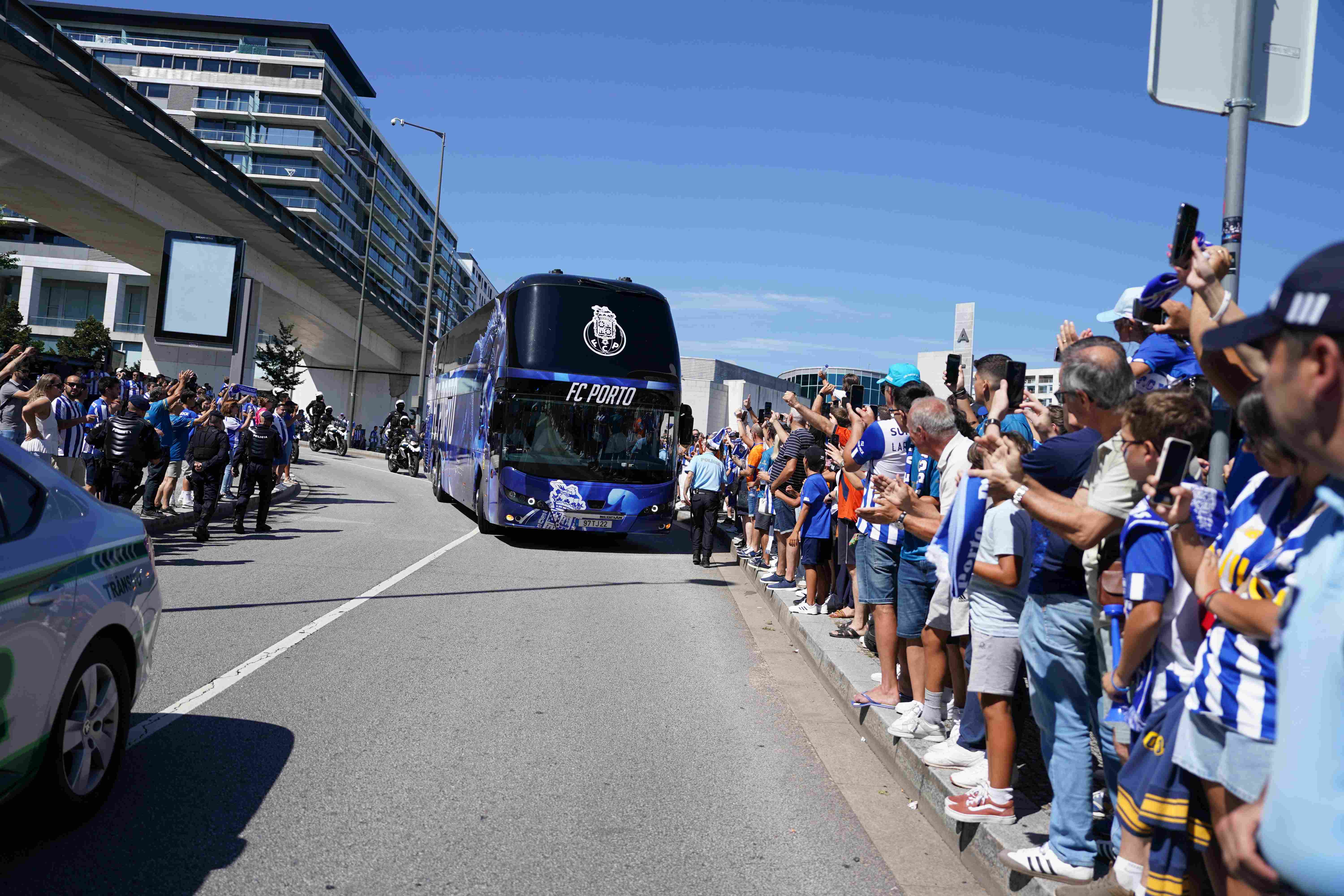 Pela primeira vez desde que há memória, o autocarro do FC Porto estacionou nas imediações do Estádio do Dragão e abriu as portas para que a comitiva que ali seguia fizesse o resto do percurso a pé, pelo meio dos adeptos, até ao interior do recinto.
