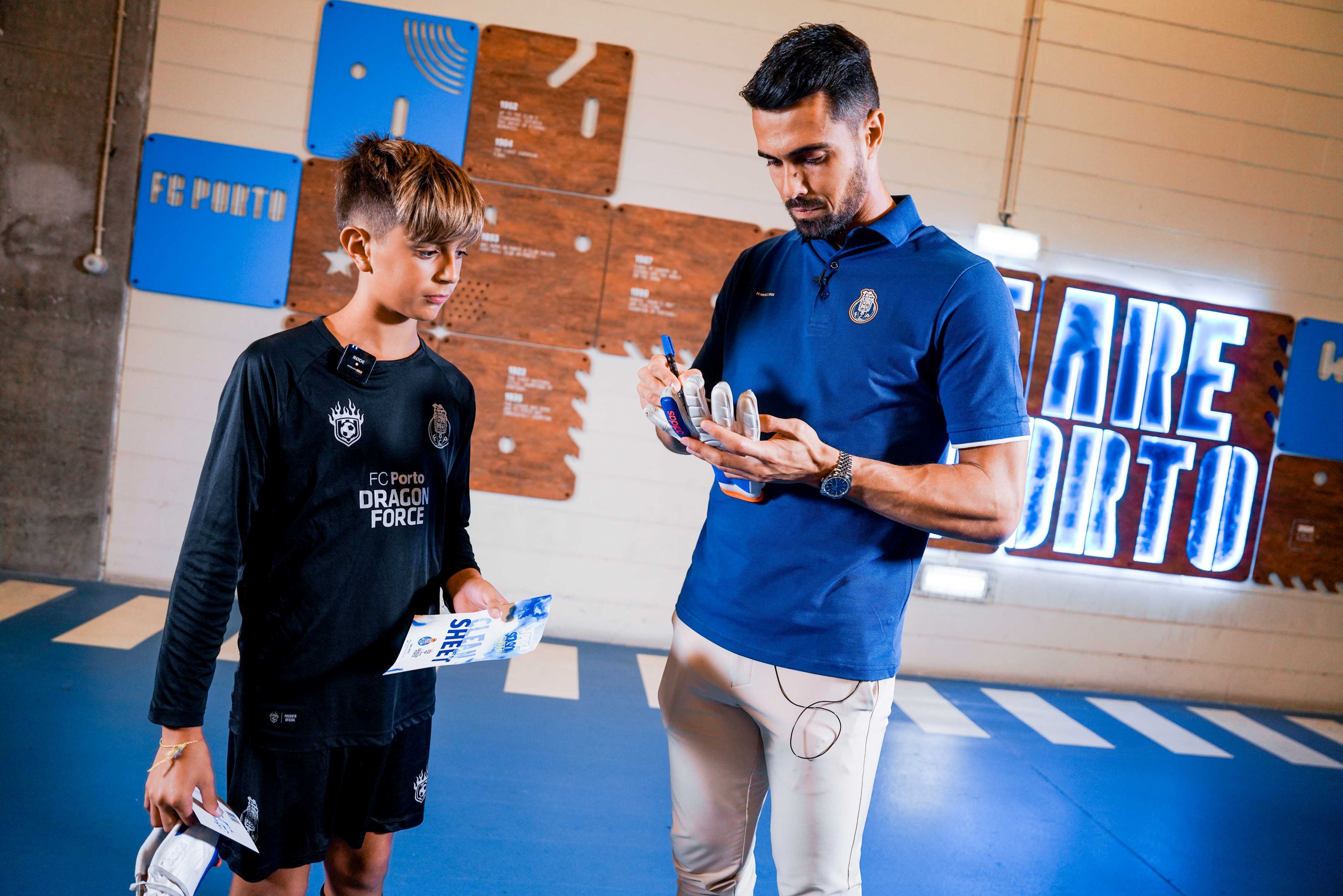Sob o olhar atento de uma sócia desde 19 de setembro de 1999 - a data de nascimento do entrevistado - e de quatro guarda-redes da Dragon Force, o número 99 azul e branco respondeu abertamente às 55 questões, reavivou memórias tão distantes como a mudança da Suíça para Portugal ou tão próximas como a Supertaça, confessou-se portista desde o berço, recordou a passagem pelas escolinhas do Benfica e não conseguiu conter as lágrimas enquanto falava sobre “o melhor presente da vida” - o filho Tomás.
