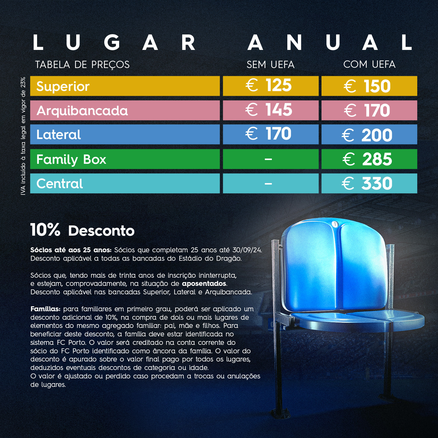 - Preço especial para aquisição conjunta com Lugar Anual do Dragão Arena