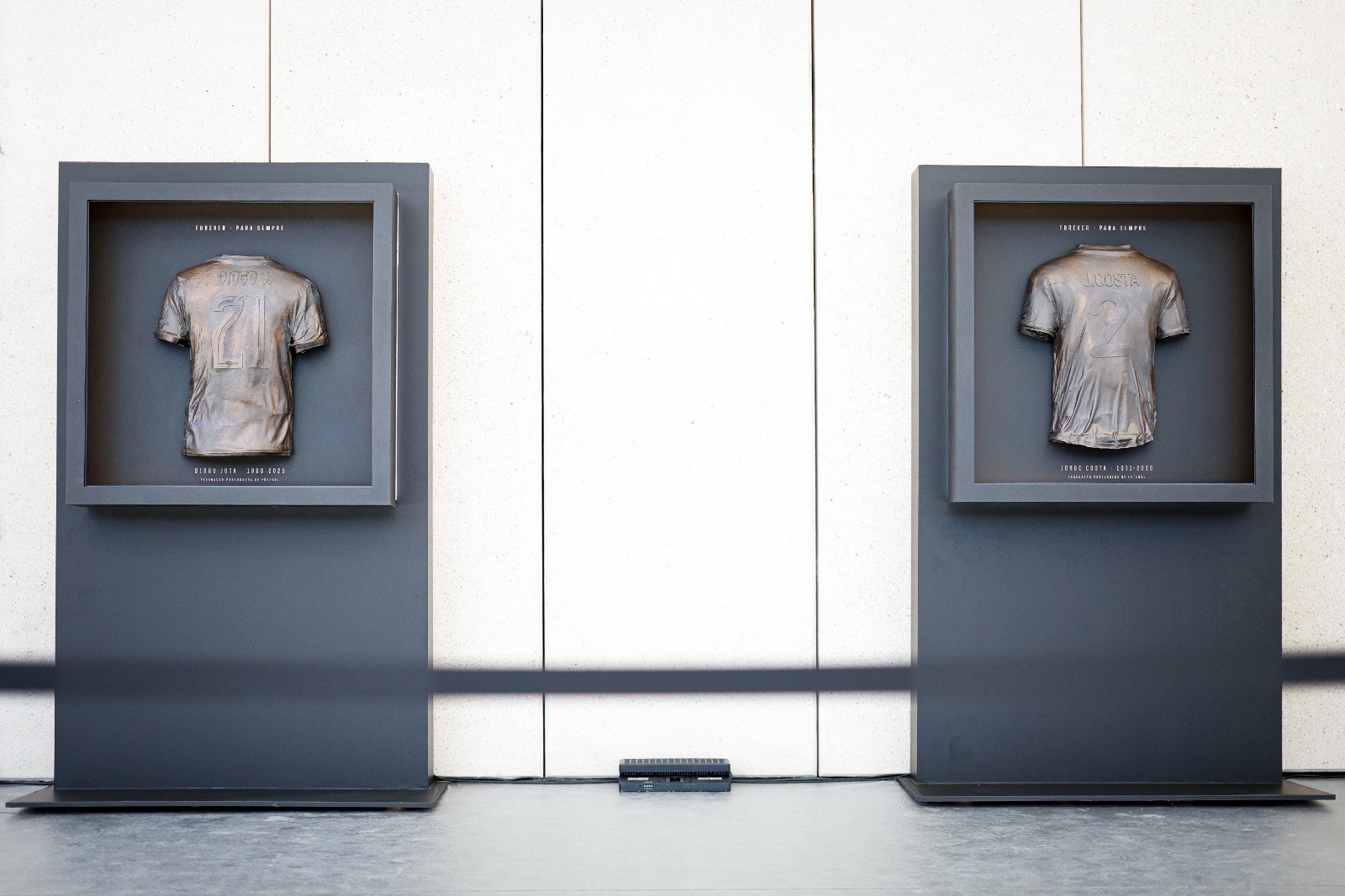 Dignificadas por Jorge Costa e Diogo Jota em tantos relvados de Portugal, da Europa e do Mundo, as camisolas da seleção nacional com os números 2 e 21 encontram-se a partir de agora eternizadas na Praça dos Heróis, no FPF Arena Portugal.