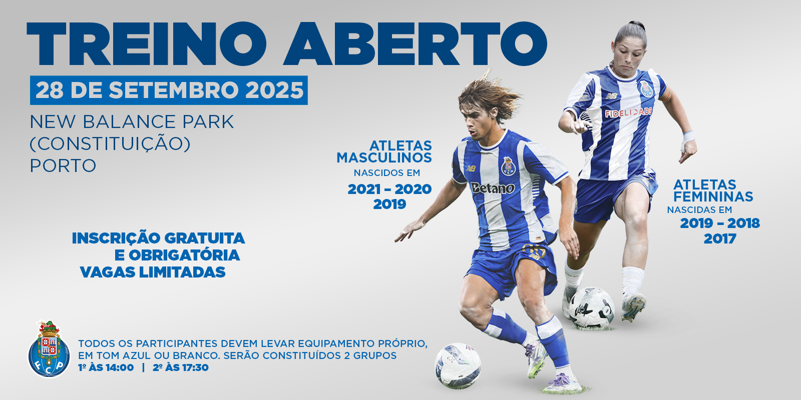 Tens o sonho de jogar no FC Porto? Esta é a tua oportunidade. Inscrição é obrigatória e vagas são limitadas