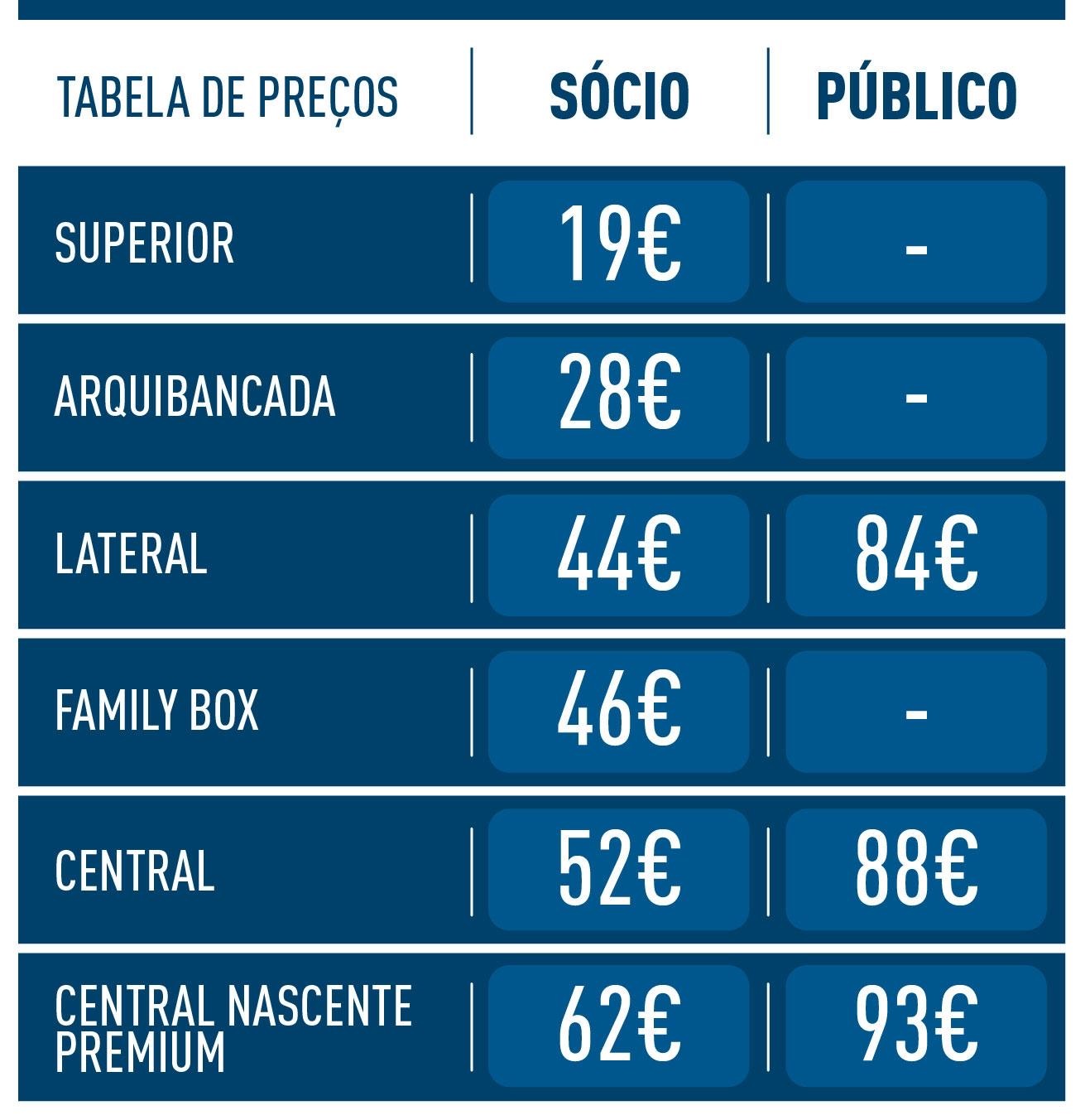 Os ingressos são exclusivos a sócios em todas as bancadas à exceção da lateral Nascente, da central Nascente e da central Nascente premium - para onde os adeptos do FC Porto também podem adquirir bilhetes.
