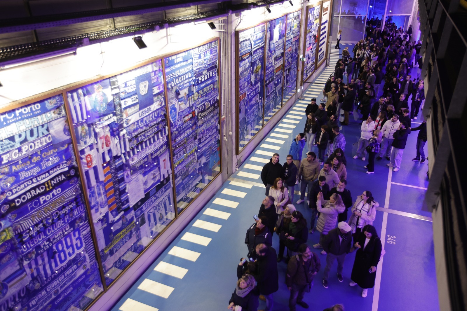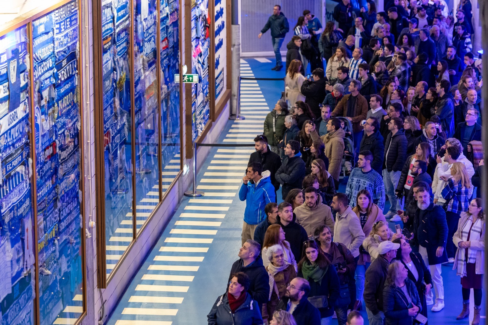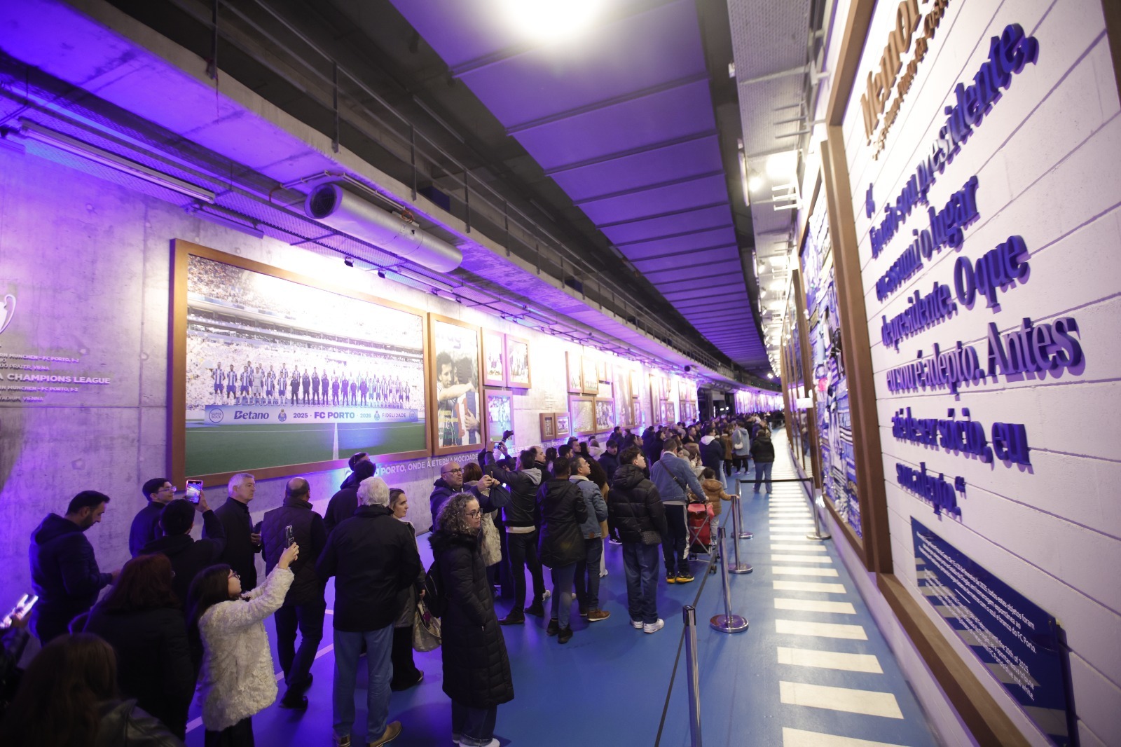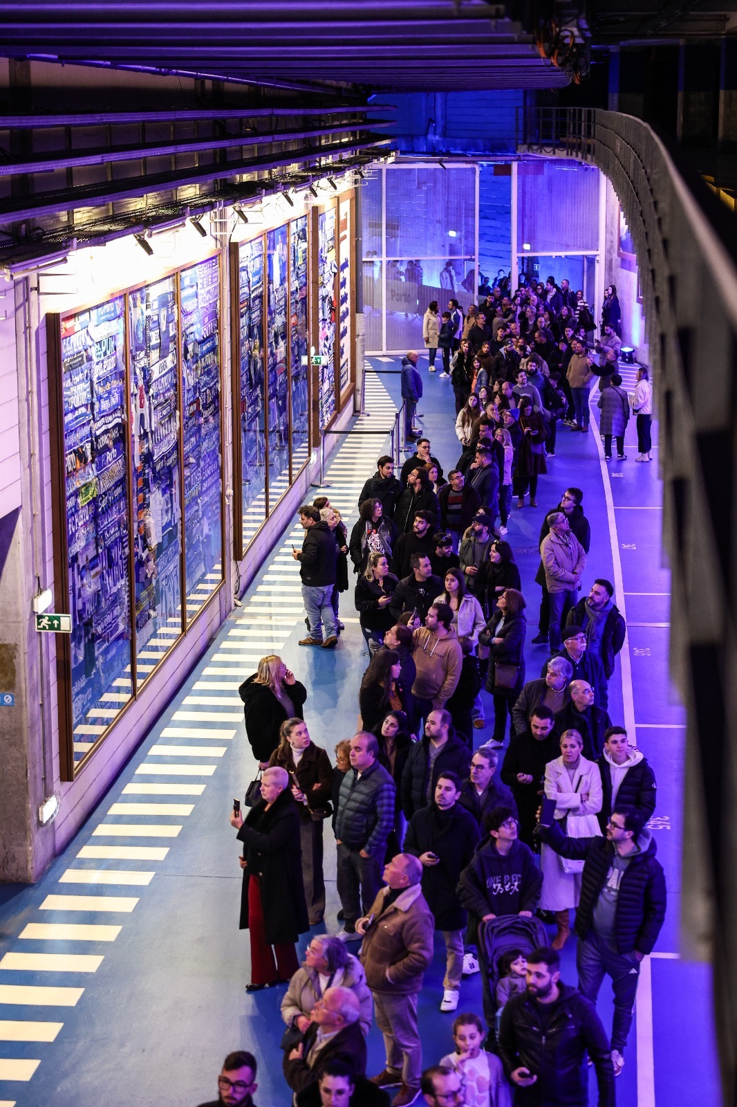 Assim que as portas abriram, os portistas começaram a percorrer o corredor de acesso aos balneários e a galeria do Estádio do Dragão, onde estão retratados muitos dos momentos que fazem a história do FC Porto - grande parte deles com Jorge Nuno Pinto da Costa a dirigir o Clube.