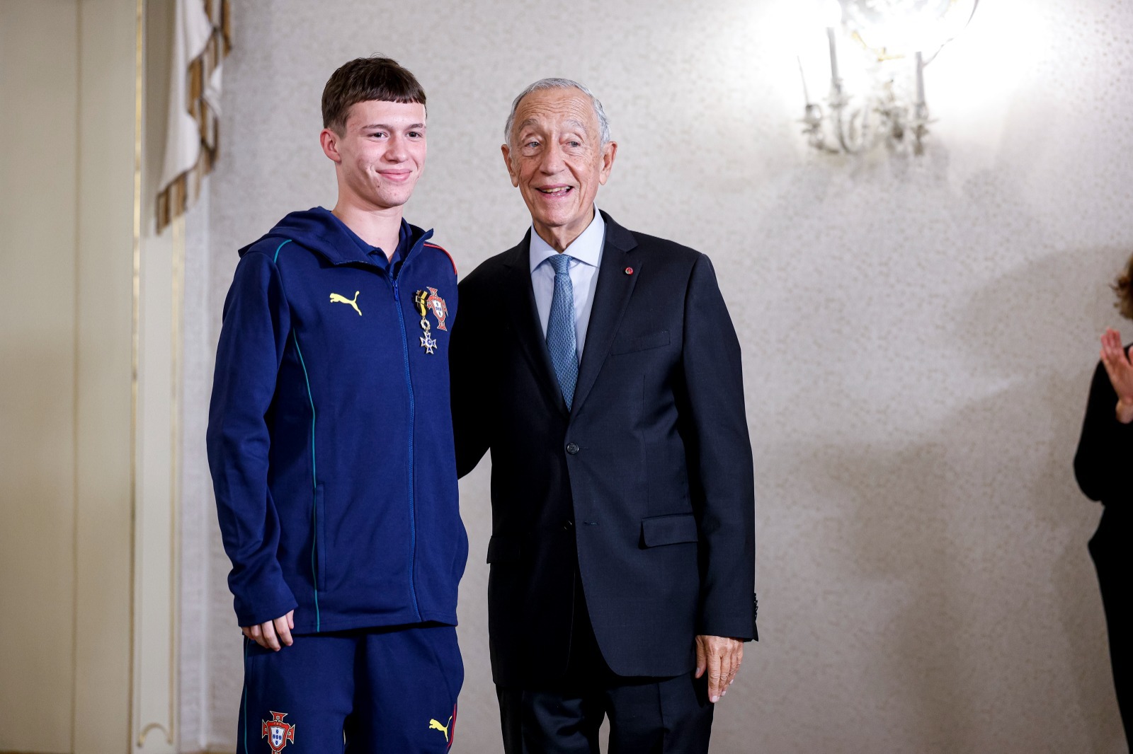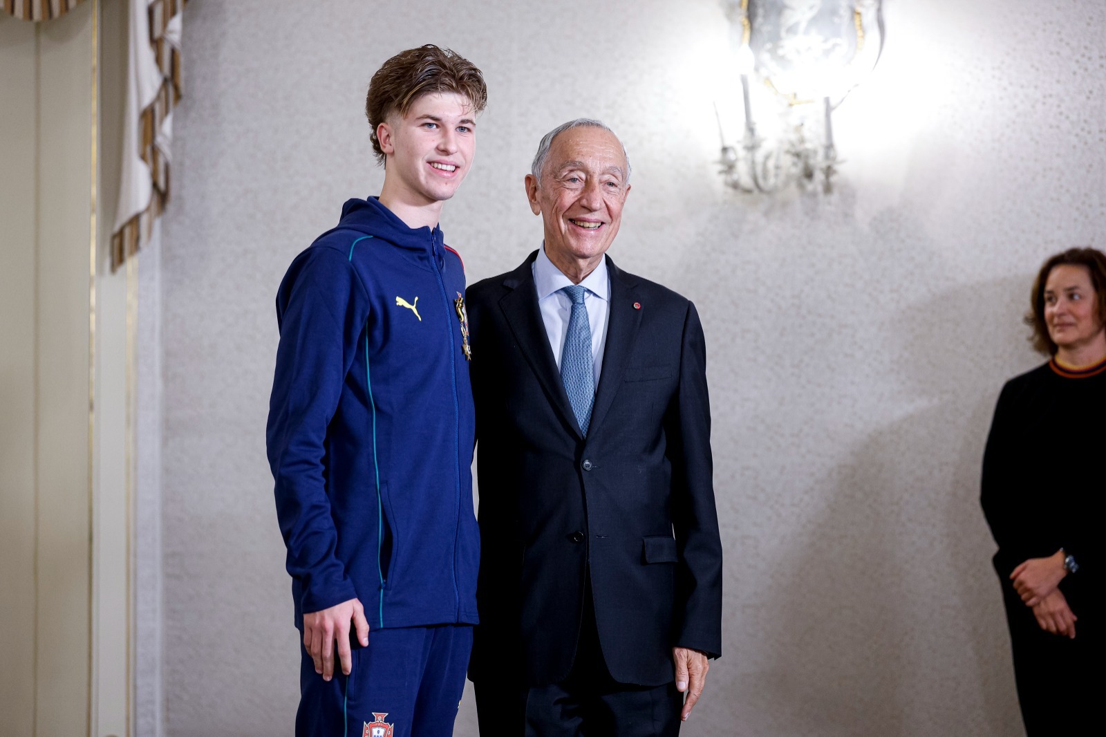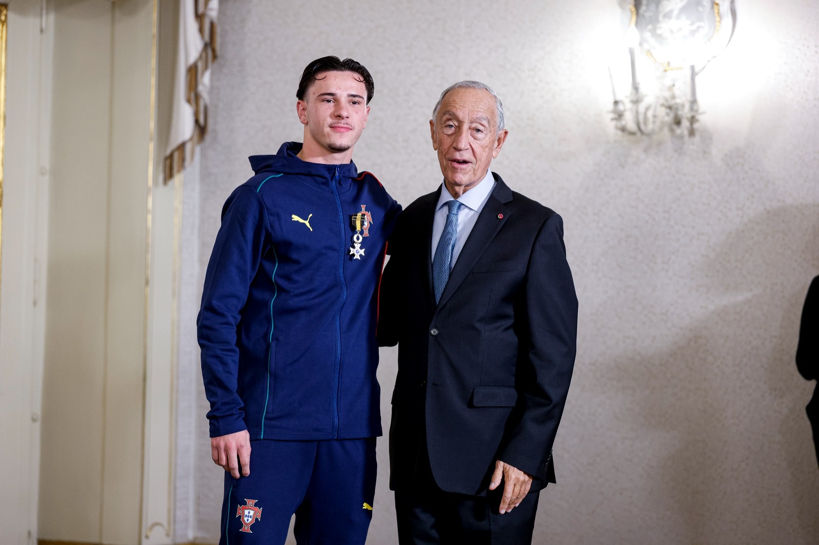 Antes de cumprimentar individualmente cada um dos homenageados, Marcelo Rebelo de Sousa revelou que estes foram “os mais jovens a serem condecorados na história do desporto e do futebol português” e sublinhou a “muita honra de entregar as insígnias” ao grupo que, em junho, já se havia sagrado também Campeão da Europa.
