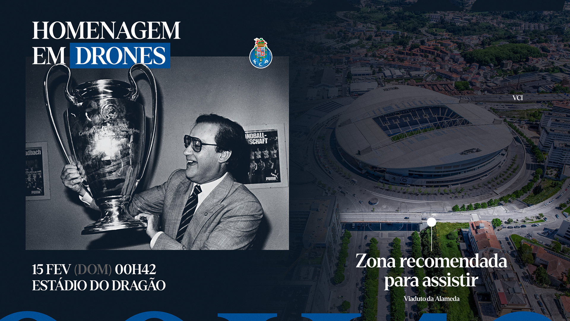A partir do viaduto do Estádio do Dragão, local recomendado para melhor enquadramento, os Portistas poderão acompanhar este momento de tributo. Informa-se que, por razões de visibilidade, não será possível assistir à homenagem a partir da Praça do Estádio.